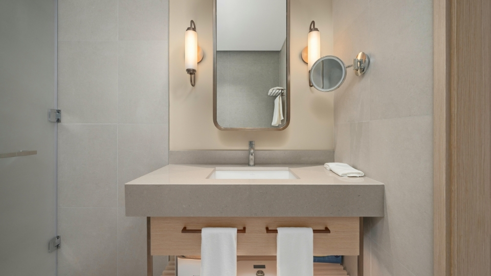 Mevcut banyo düzeni korunur, ancak yüzeylerde, dolaplarda, aydınlatmalarda ve vitrifiye ürünlerinde modern değişiklikler yapılır.